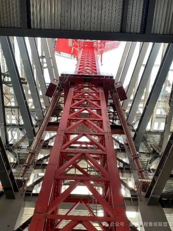 3、發(fā)明了“一種六支座下承支撐式塔吊支撐體系”“附著面收縮情況下動臂塔吊爬升輔助結(jié)構(gòu)”和“適應(yīng)于塔吊附著面收縮狀態(tài)的塔吊支撐架”,形成了巨柱外掛式大型塔吊自爬支撐設(shè)計與應(yīng)用技術(shù)。