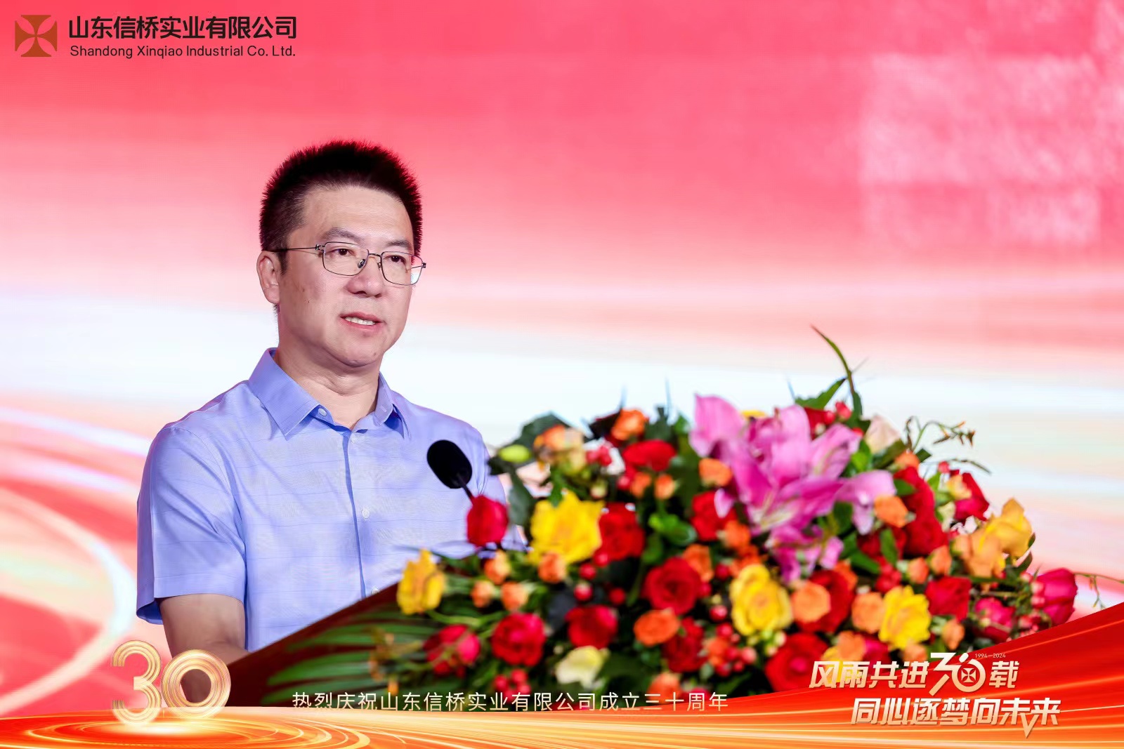 鄭總首先對信橋30周年慶典表示祝賀,并強調(diào)信橋公司在耐低溫和低合金型鋼以及角鋼等領(lǐng)域表現(xiàn)突出,為國內(nèi)外重點工程、重要客戶提供了滿意的產(chǎn)品和服務(wù),為塑造山鋼品牌做出巨大貢獻。最后對雙方合作做出美好展望。
